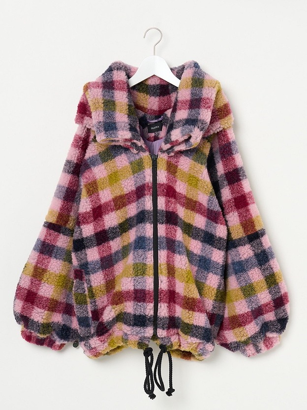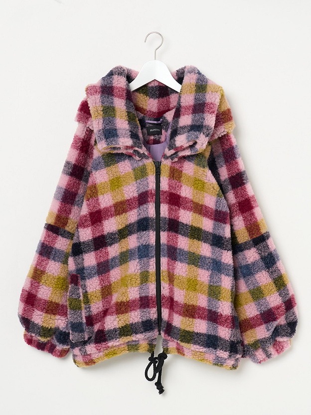 MATERIAL:FACE 75%WOOL 25%POLYESTER / LINING 100%POLYESTER Col.:TEDDY CHECK PINK SIZE:S LENGTH 61cm / CHEST WIDTH 79cm / CENTER NECK-SLEEVE LENGTH 89cm / WAIST154cm / WEIGHT 1275g