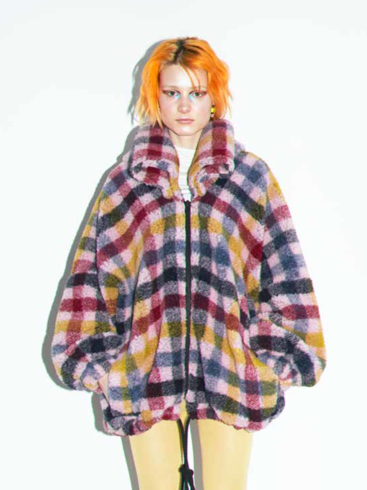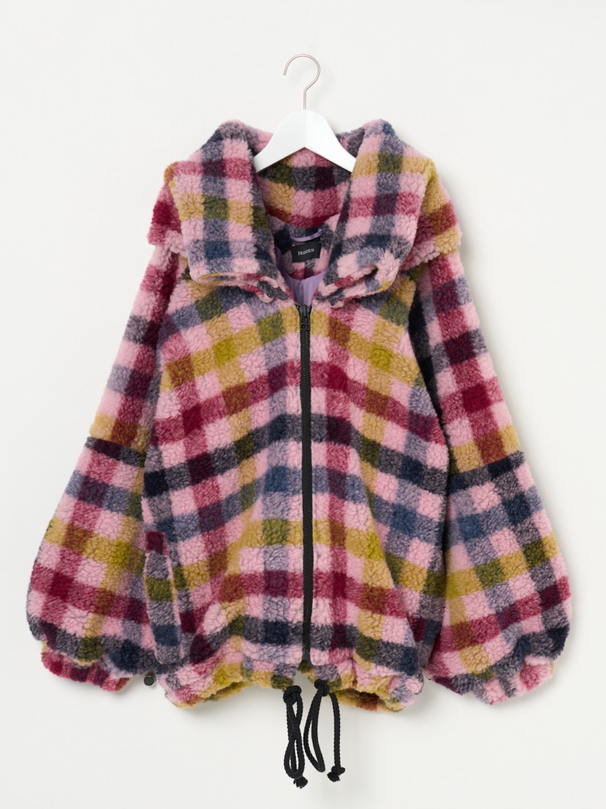 Jacket featuring a front zipper fastening, voluminous collar, a drawstring detail at the hem.