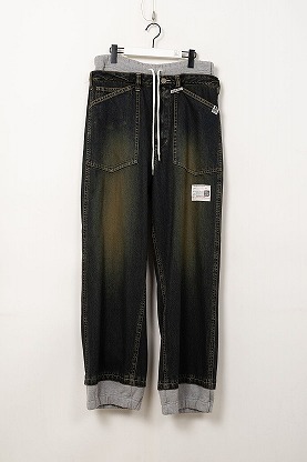 MIHARA YASUHIRO // A16PT024 / SWEAT COMBINED DENIM PANTS INDIGO 46 // 90,200JPY